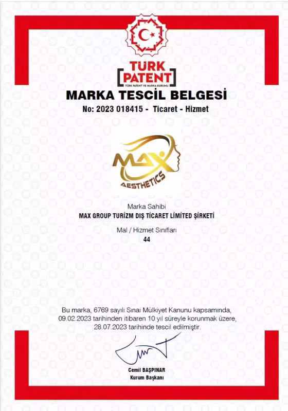 Our ‘Max Hair Trans’ trademark is formally registered and protected by the Turkish Patent and Brand Association. This certifies our commitment to innovation and excellence in hair restoration, ensuring that the quality and expertise you trust are unique and legally safeguarded.