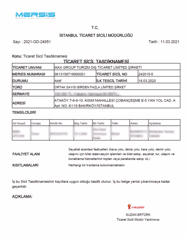 This Certificate of Registration with the Istanbul Chamber of Commerce formally recognizes Max Health Group as a fully compliant and legitimate entity within Turkey’s commercial landscape. It underscores our long-term commitment to ethical business practices and operational transparency.